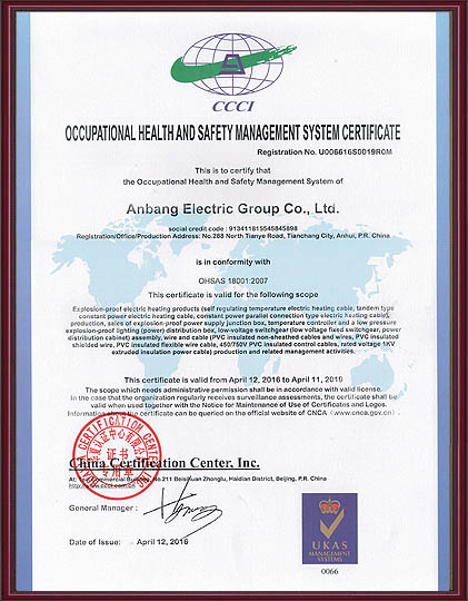 安邦電氣股份有限公司,總部位于北京市長安街,成立于2004年,注冊資金10088萬。安徽生產(chǎn)基地占地面積63000平方米,擁有66套各類生產(chǎn)線,其中進口生產(chǎn)線6套。國家高新技術(shù)型企業(yè),滁州市市長質(zhì)量獎企業(yè),專精特新“小巨人”企業(yè),擁有國家知識產(chǎn)權(quán)局授權(quán)的45項專利,其中發(fā)明專利28項 , 主筆《太陽能熱利用自限溫電熱帶安裝規(guī)范》行業(yè)標(biāo)準(zhǔn),參編《自限溫電伴熱帶》國家標(biāo)準(zhǔn)、《工業(yè)和商業(yè)用電阻式伴熱系統(tǒng)》國家標(biāo)準(zhǔn)、《太陽能熱利用自限溫電熱帶》行業(yè)標(biāo)準(zhǔn)、《爆炸性環(huán)境 電阻式伴熱器》國家標(biāo)準(zhǔn)等7項國家標(biāo)準(zhǔn)。企業(yè)通過UL認證,國家強制性 CCC產(chǎn)品認證,ISO9001質(zhì)量管理體系認證,ISO14001環(huán)境管理體系認證,ISO45001職業(yè)健康安全管理體系認證,Q/SHS0001.1健康、安全與環(huán)境管理體系認證,歐盟防爆ATEX認證,歐盟CE認證,RoHS認證,俄羅斯海關(guān)聯(lián)盟認證,國家防爆電氣CCC證書。產(chǎn)品系列:集膚伴熱系統(tǒng)、電伴熱系統(tǒng)、電加熱器、電地暖系統(tǒng)、集儀器儀表、電線電纜、高低壓配電柜(箱)、電纜橋架、閥門管件等等設(shè)計、制造、銷售。產(chǎn)品應(yīng)用于航天航空、軍工、石油、石化、天然氣、機場、化工、鋼鐵、隧道、消防、養(yǎng)殖、融雪化冰、室內(nèi)供暖、國家電網(wǎng)及眾多電廠等等國家重點工程。出口美國、英國、德國、俄羅斯、韓國、日本、哈薩克斯坦、烏克蘭、伊朗等眾多國家。